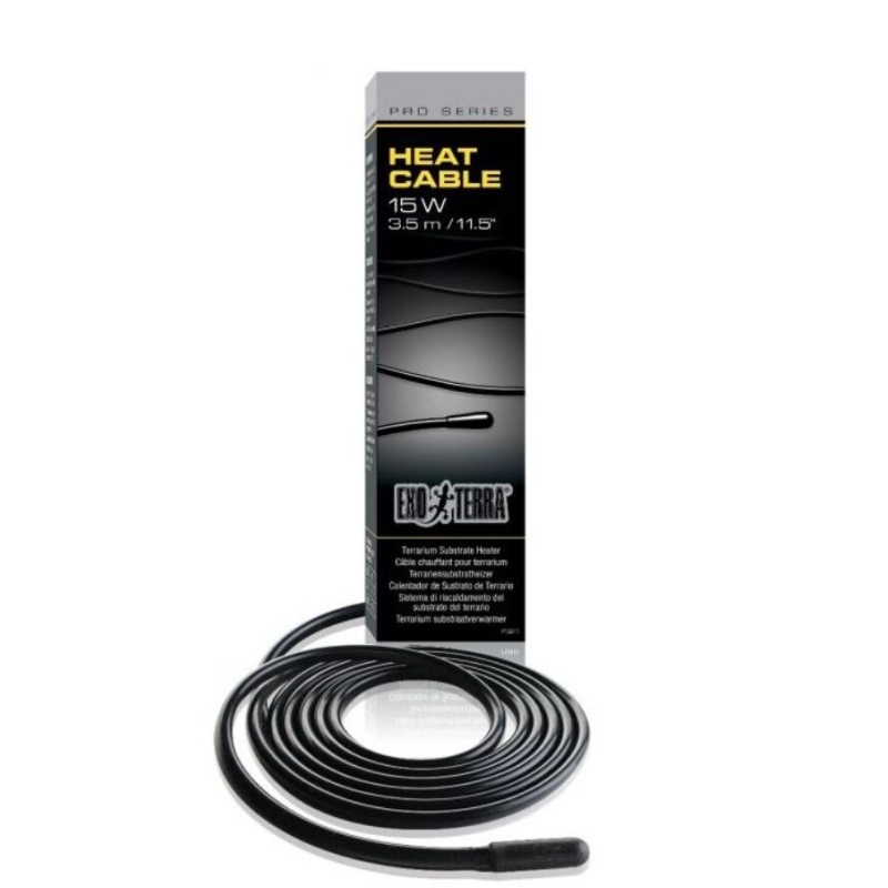 Exo Terra -lämpökaapeli mahdollistaa lämmön tuottamisen juuri tarvittaessa. Sitä käytetään parhaiten Exo Terra -terariumin alla tiettyjen pisteiden lämmittämiseen terariumin lattialla tai sitä voidaan käyttää kasvattajatelineissä useiden koteloiden lämmittämiseen. Joustavalla, vedenkestävällä ja kestävällä Exo Terra -lämpökaapelilla on lukuisia käyttötarkoituksia ammattilaiselle tai harrastajalle. Exo Terra -lämmityskaapelissa on kaksinkertainen piieristys, joka takaa täydellisen turvallisuuden.
